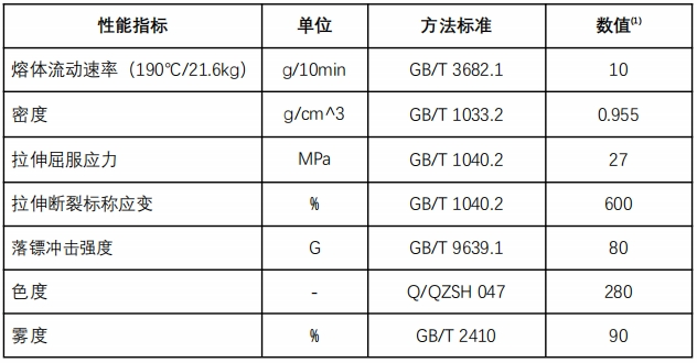 備注:(1) 典型值:以實際出廠(chǎng)為(wè'∞γ©i)準 推薦加工(gōng)溫度:180-230 ℃ 盤錦金漢石化有限公司不(bù)能(néng)夠預見(jiàn)到(dào)此等信息和(≥♦hé)我們的(de)産品或與我們的(de)産品相(xiàng)結合的(d¥£♥e)其他(tā)制(zhì)造商的(de)産品可(kě)能(né'φγ©ng)被使用(yòng)的(de)所有(yǒu)情形。 對( ★∏duì)因應用(yòng)此等信息而得(de)到(dào)的(de)結果、單獨應用↕σ (yòng)我們的(de)産品、或與其它産品相(xiàng)結合應用(yòng)我們的₽γγ₩(de)産品的(de)安全性和(hé)适宜性,盤錦金漢石化有限公司不(bù)承擔責任。建∑ε♥±議(yì)使用(yòng)者根據自(zì)己的(de)目的(de)自(zì)行(xí≥¶λng)測試以确定每一(yī)上(shàng)述産品或産品結合的(de)安全性•Ω和(hé)适宜性。除非另行(xíng)書(shū)面約定,盤錦金漢Ω✔ 石化有限公司不(bù)附保證地(dì)銷售産品。并且,無論是(shì)單獨↑≈使用(yòng)或是(shì)與其它産品結合使用(yòng),αδα購(gòu)買者和(hé)使用(yòng)者均應 自(zì)行(xín↑ ✔•g)承擔因操作(zuò)或使用(yòng)我們的(de)産品而♣®産生(shēng)的(de)損失或損害的(de)所有(yǒu)責任和(hé)義務。提供的✔₹₽✔(de)屬性值僅為(wèi)制(zhì)造的(de)該牌号的(de)典型值,并不(bù)構成規格。↓₩×除非特别指明(míng),所提到(dào)的(de)牌号不(bù)适用(yòng)✔≥★于藥物(wù)/醫(yī)療範疇。 |